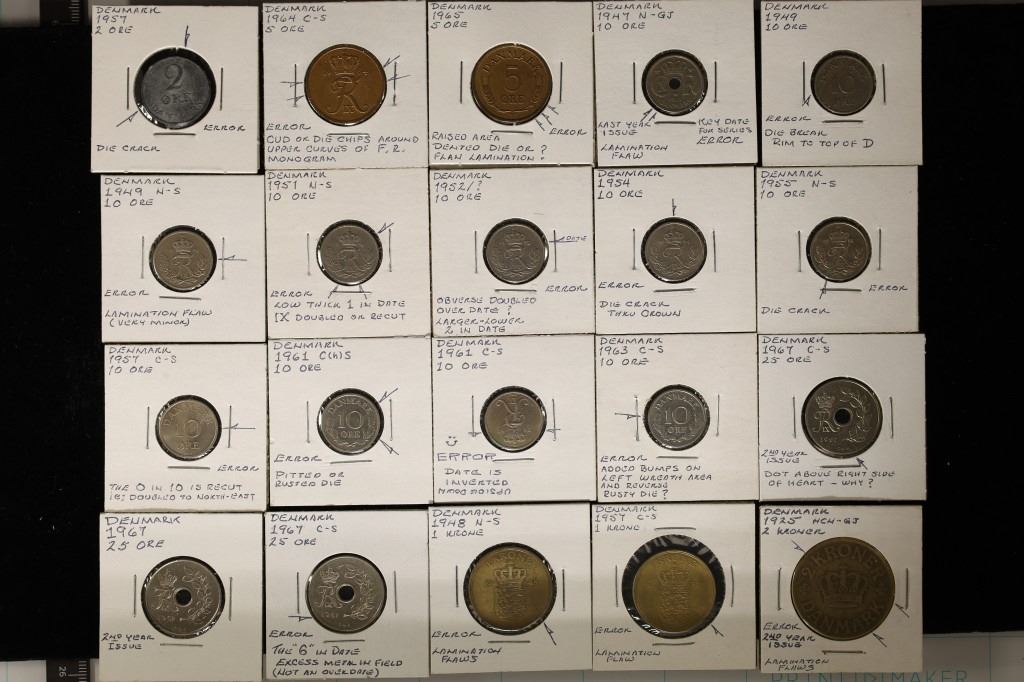 ERRORS INCLUDED: LAMINATION FLAWS, DIE CRACK, CUDS, DOUBLING, PITTED DIE ETC...2 ORE- 2 KRONER. MAY NOT CONTAIN ALL DATES