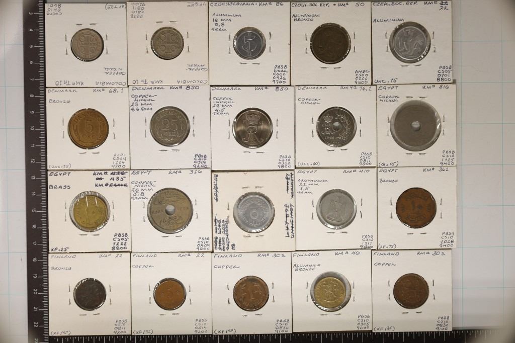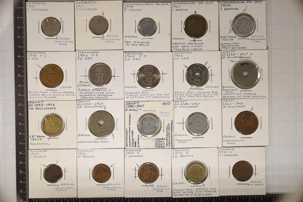 3-CZECHOSLOVAKIA, 4-DENMARK, 6-EGYPT AND 5-FINLAND. INCLUDES DIE CRACKS, LAMINATION FLAWS AND OTHERS. 1917-1979. MAY NOT CONTAIN ALL DATES AND MAY CONTAIN DUPLICATES.
