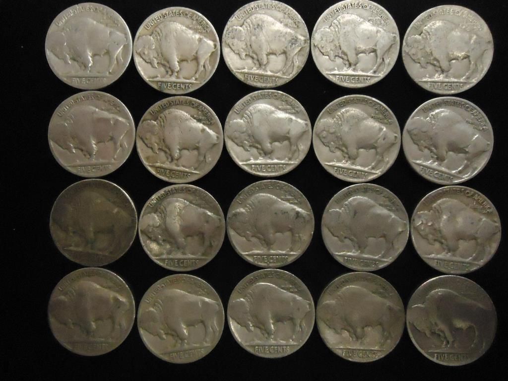 20 ASSORTED FULL DATE 1930'S BUFFALO NICKELS