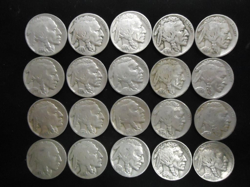 20 ASSORTED FULL DATE 1930'S BUFFALO NICKELS