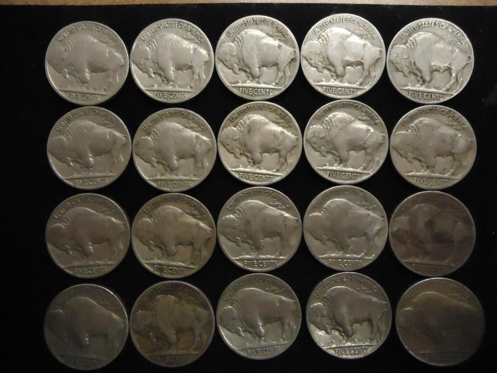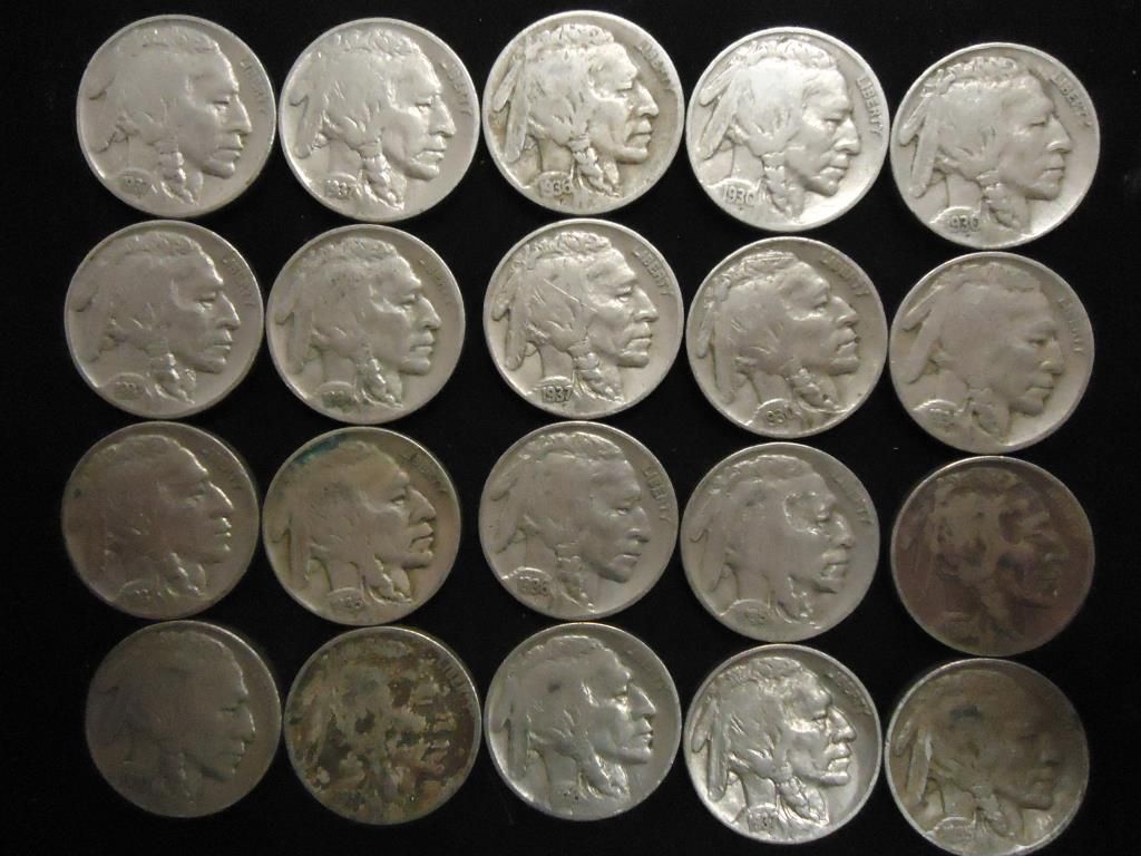 20 ASSORTED FULL DATE 1930'S BUFFALO NICKELS