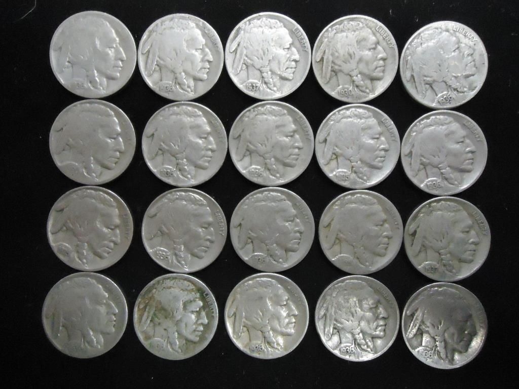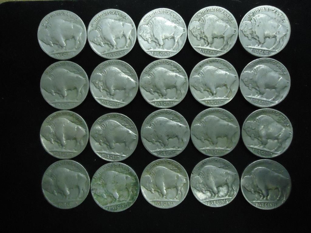 20 ASSORTED FULL DATE 1930'S BUFFALO NICKELS