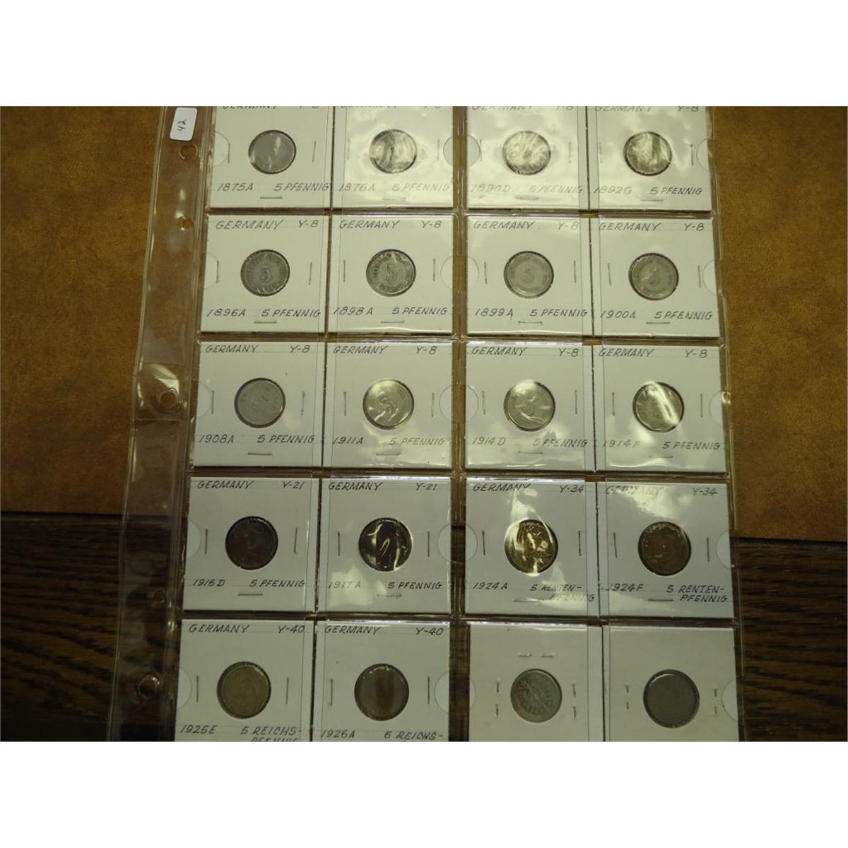 20 ASSORTED GERMAN 5 PFENIGS DATES FROM 1875-1926