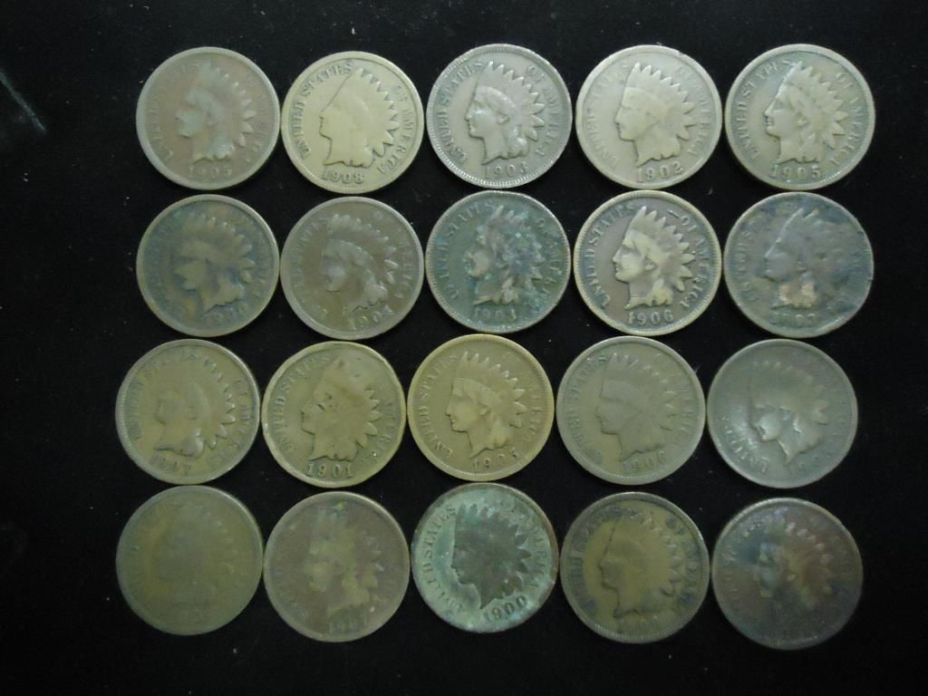20 ASSORTED INDIAN HEAD CENTS 1900'S