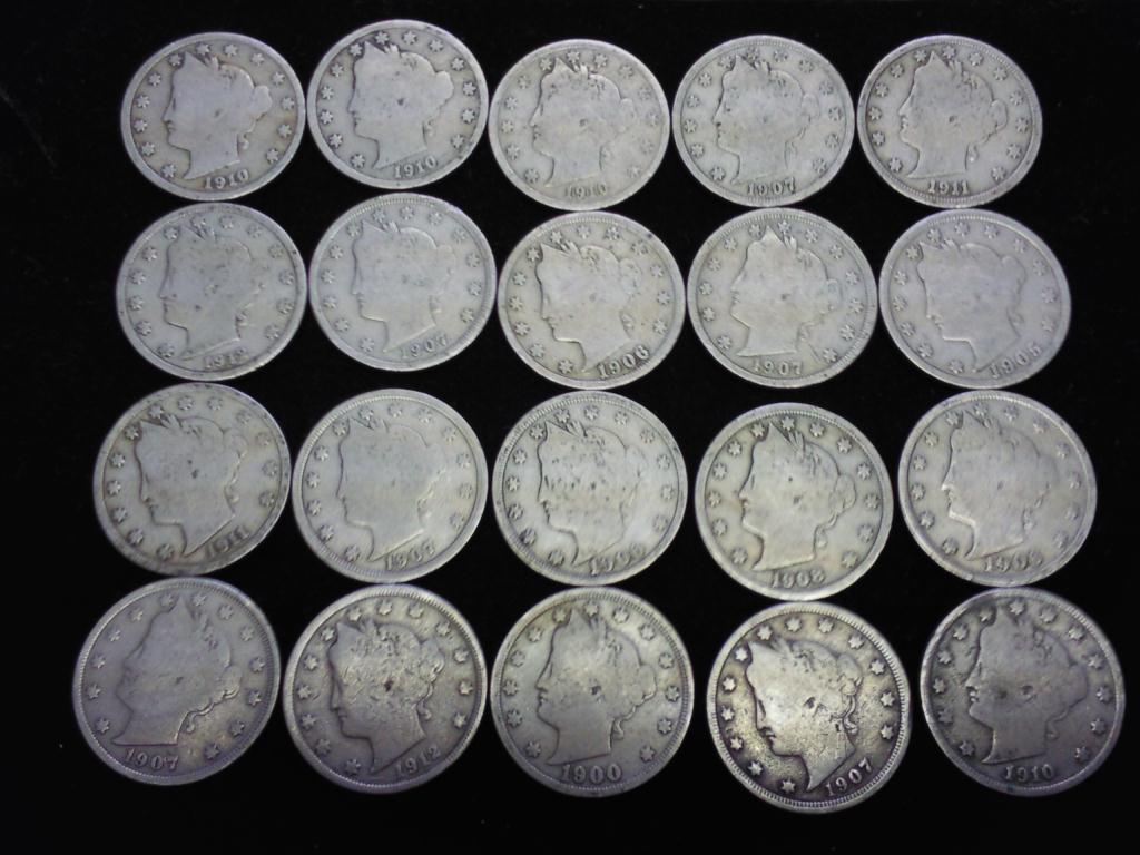 20 ASSORTED LIBERTY "V" NICKELS