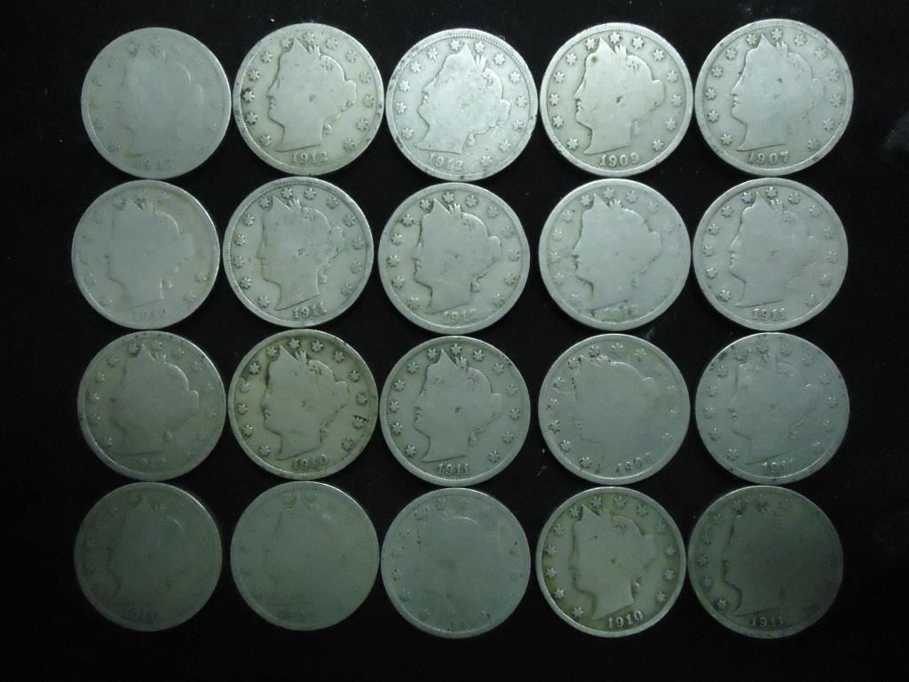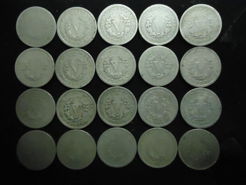 20 ASSORTED LIBERTY "V" NICKELS