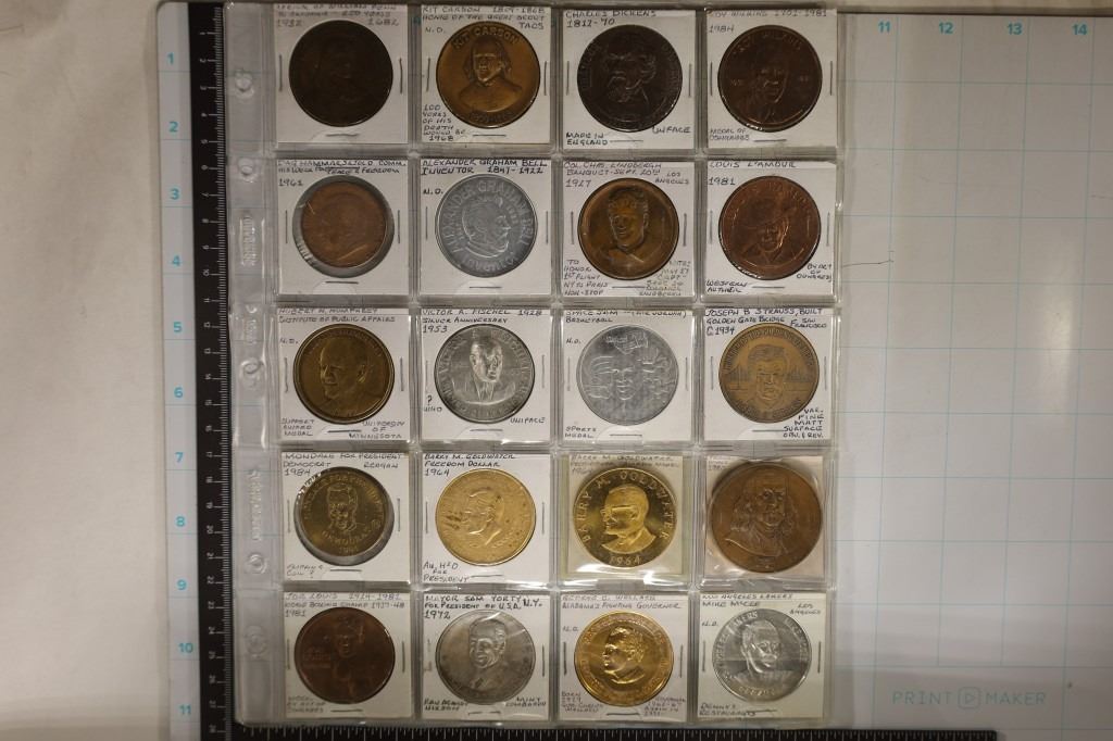 CARSON, CHARLES DICKENS, ROY WILKINS, DAG HAMMARSKJULD, ALEXANDER GRAHAM BELL, CHAS LINDBERGH, LOUIS L'AMOUR, HUBERT HUMPHREY, VICTOR FISCHEL, JOSEPH B. STRAUSS, MONDALE FOR PRESIDENT, BARRY M. GOLDWATER X2,