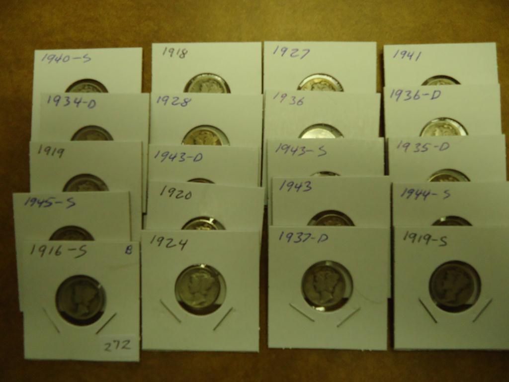 20 ASSORTED MERCURY DIMES 1916 AND UP