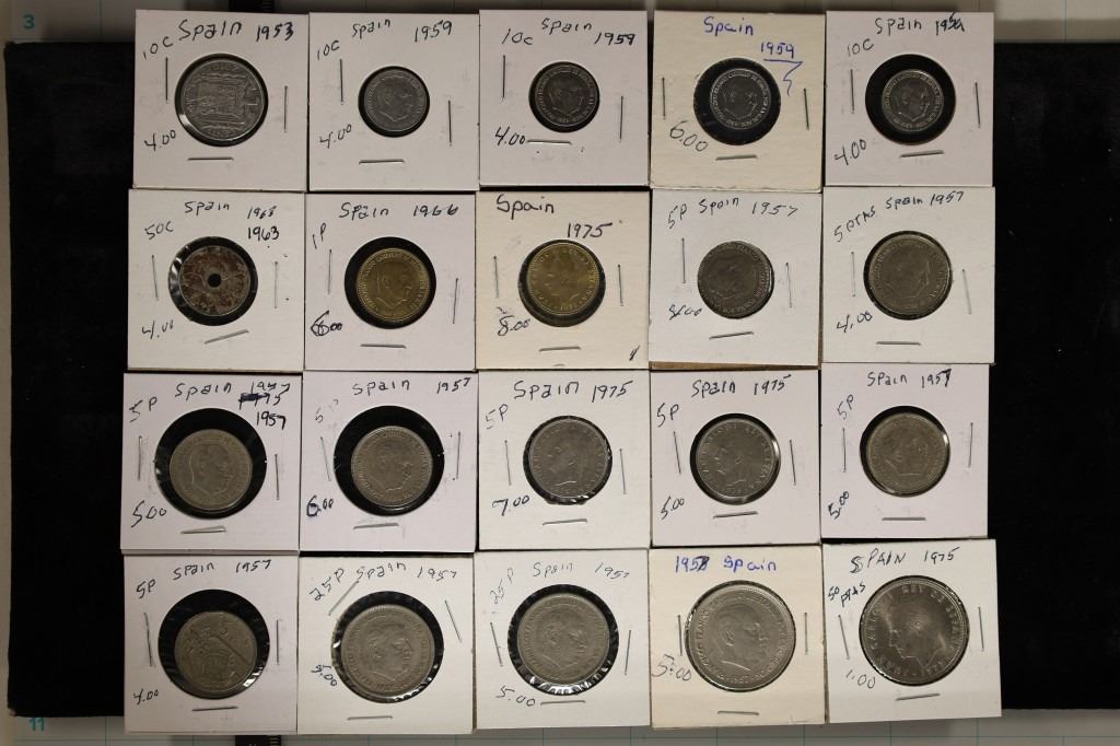 CENTAVOS, 1-50 CENTAVO, 2-ONE PESATA, 8-FIVE PESATAS, 2-25 PESATAS AND 2-50 PESATAS