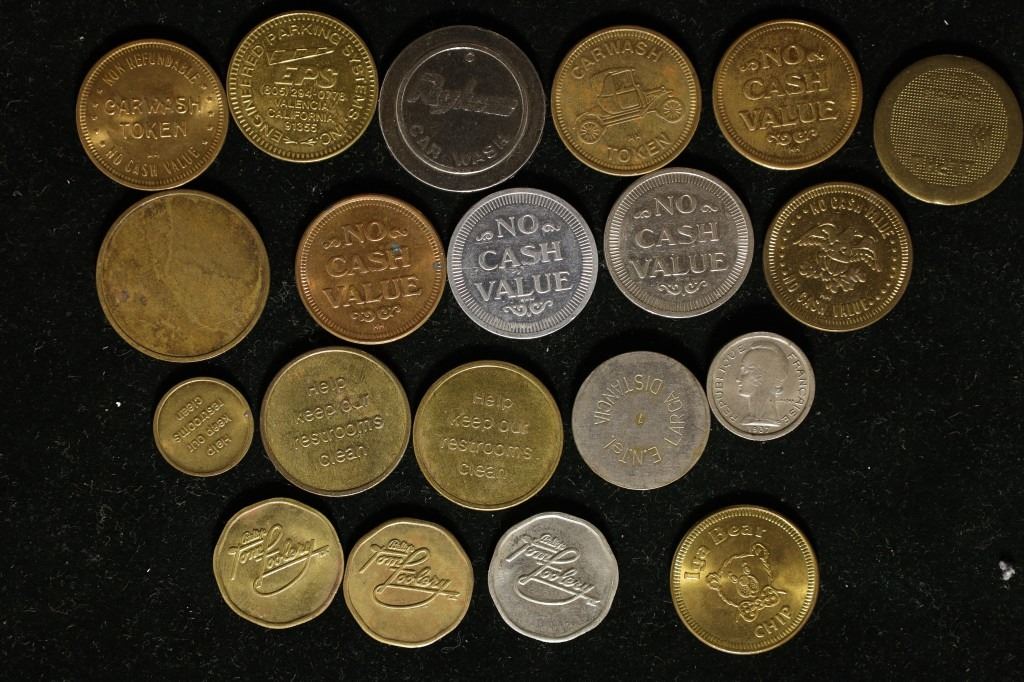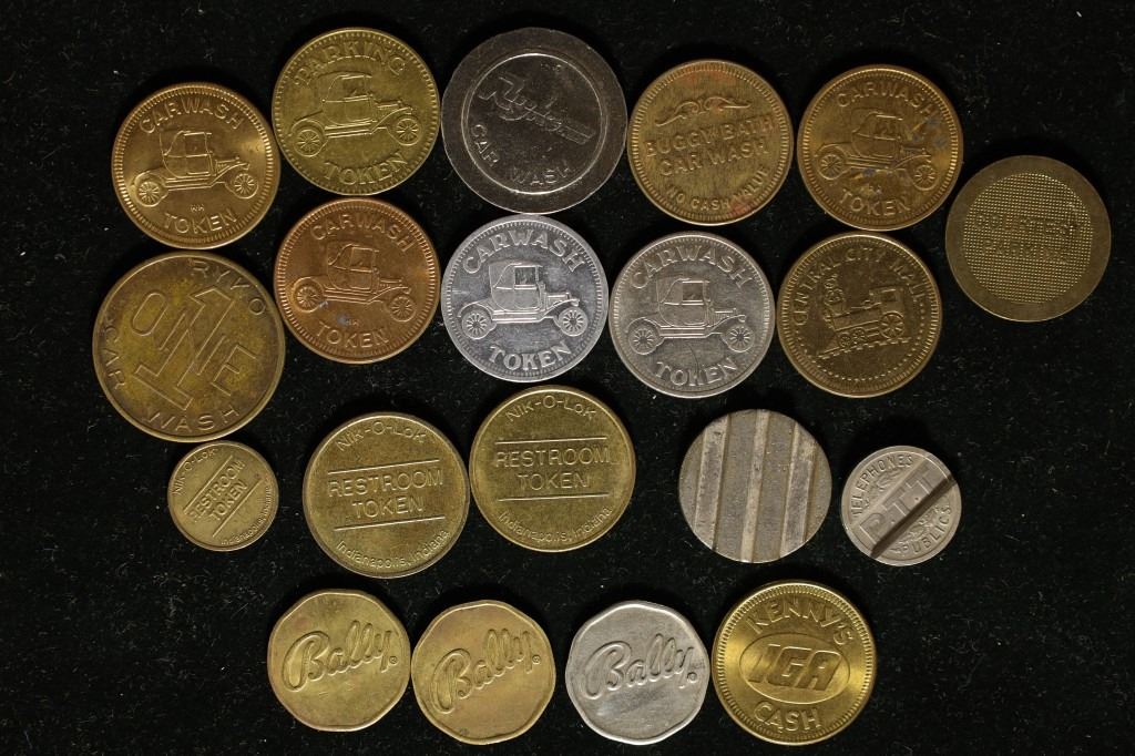 20 ASSORTED TOKENS: CARWASH, BALLY'S, TELEPHONE,