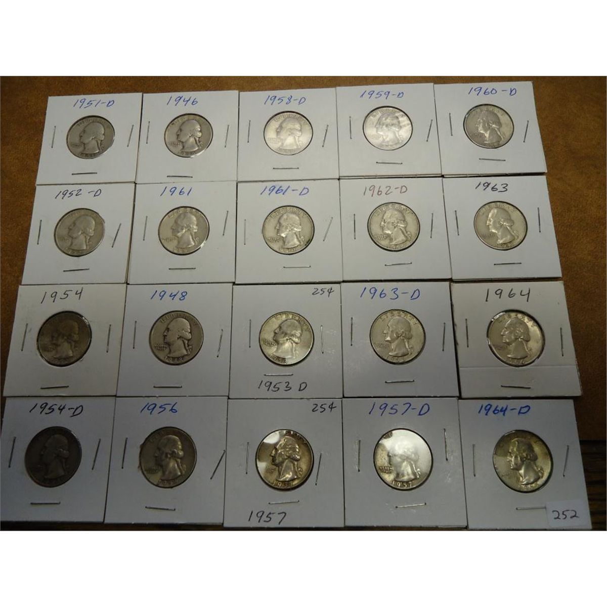 20 ASSORTED WASHINGTON SILVER QUARTERS