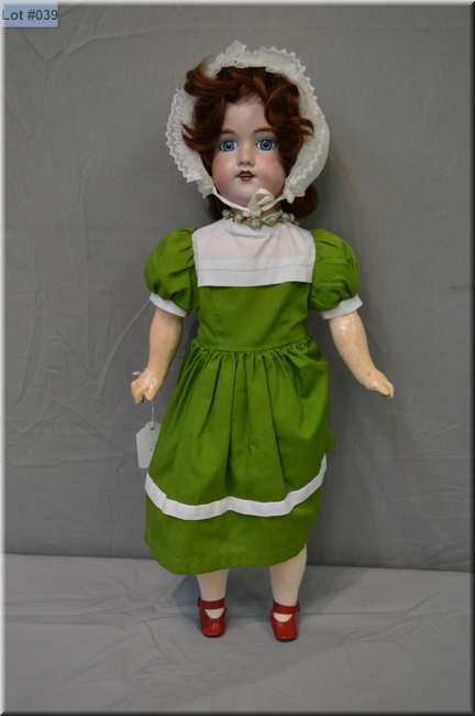 20" Armand Marseille 390 with oily bisque face, replaced eyes and teeth on crude composition body