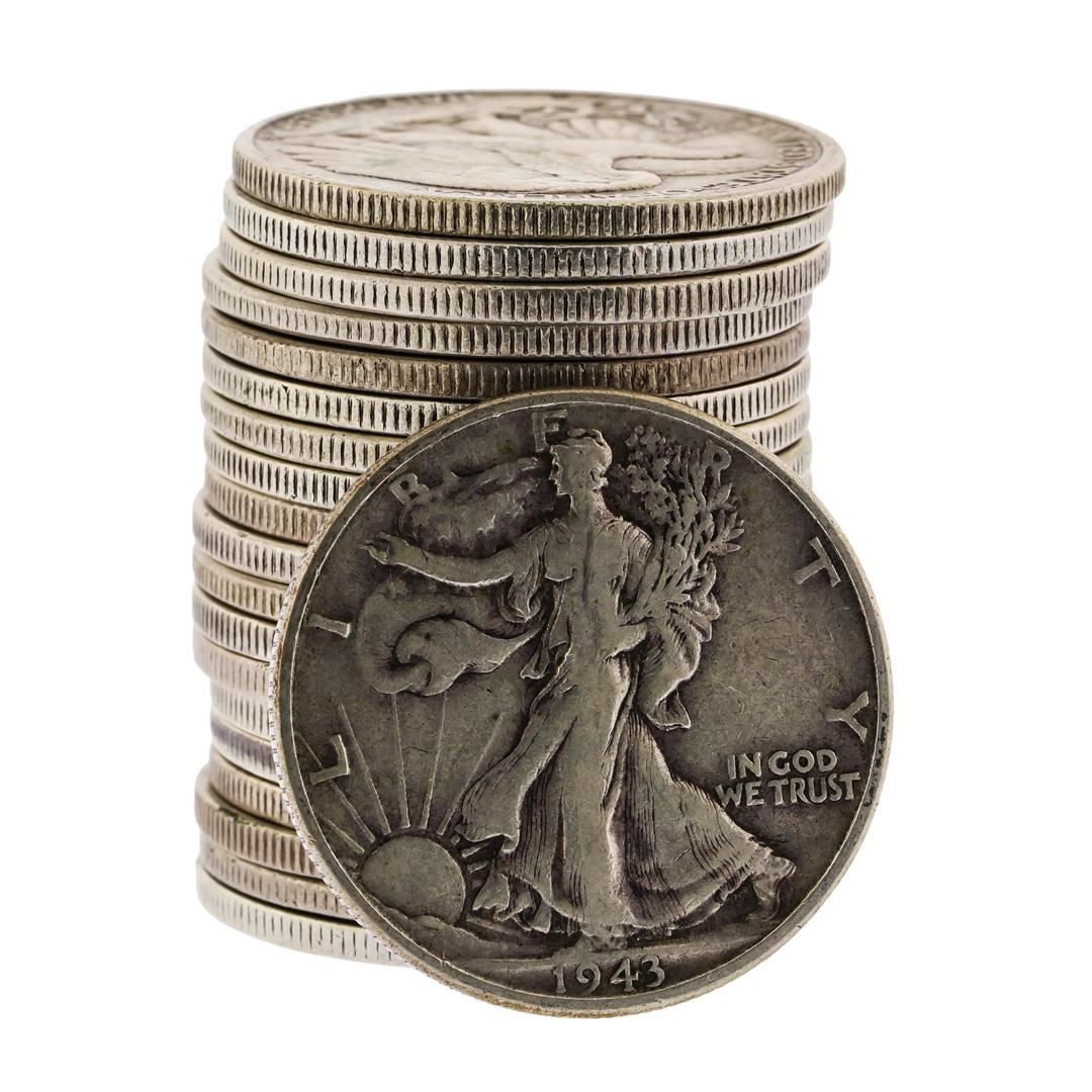 (20) Assorted 1916-1946 Circulated Silver Walking Liberty Half Dollar Coins