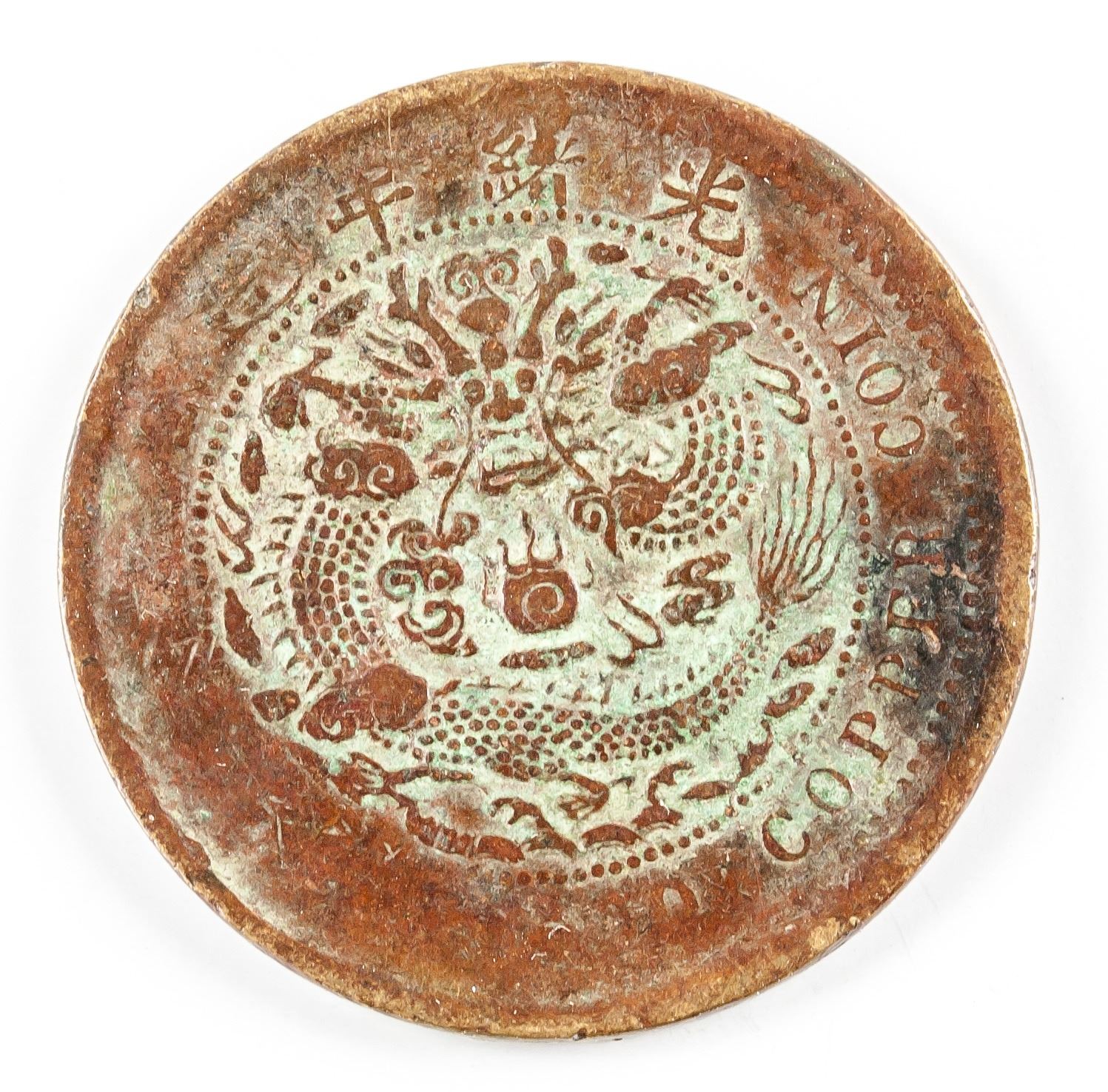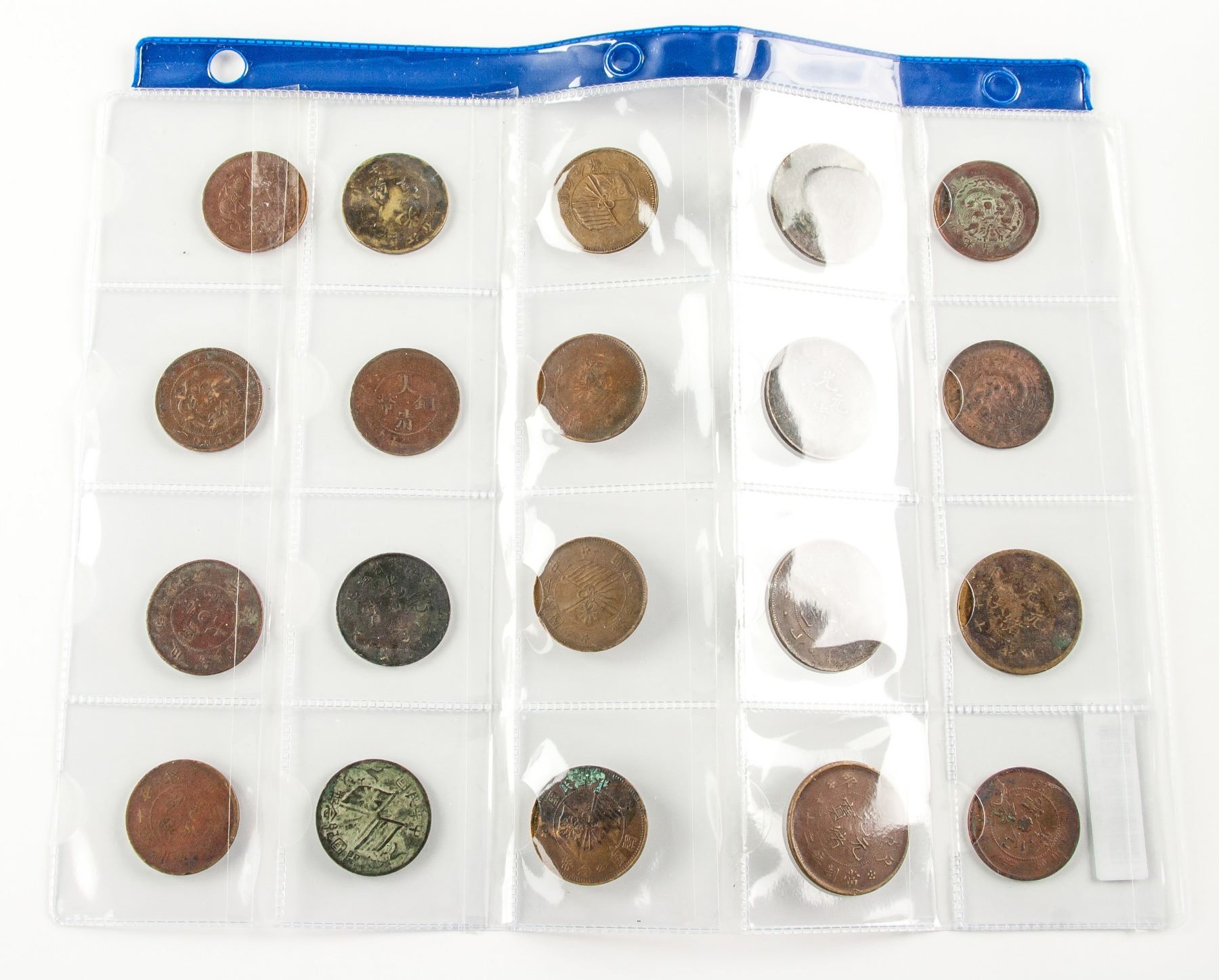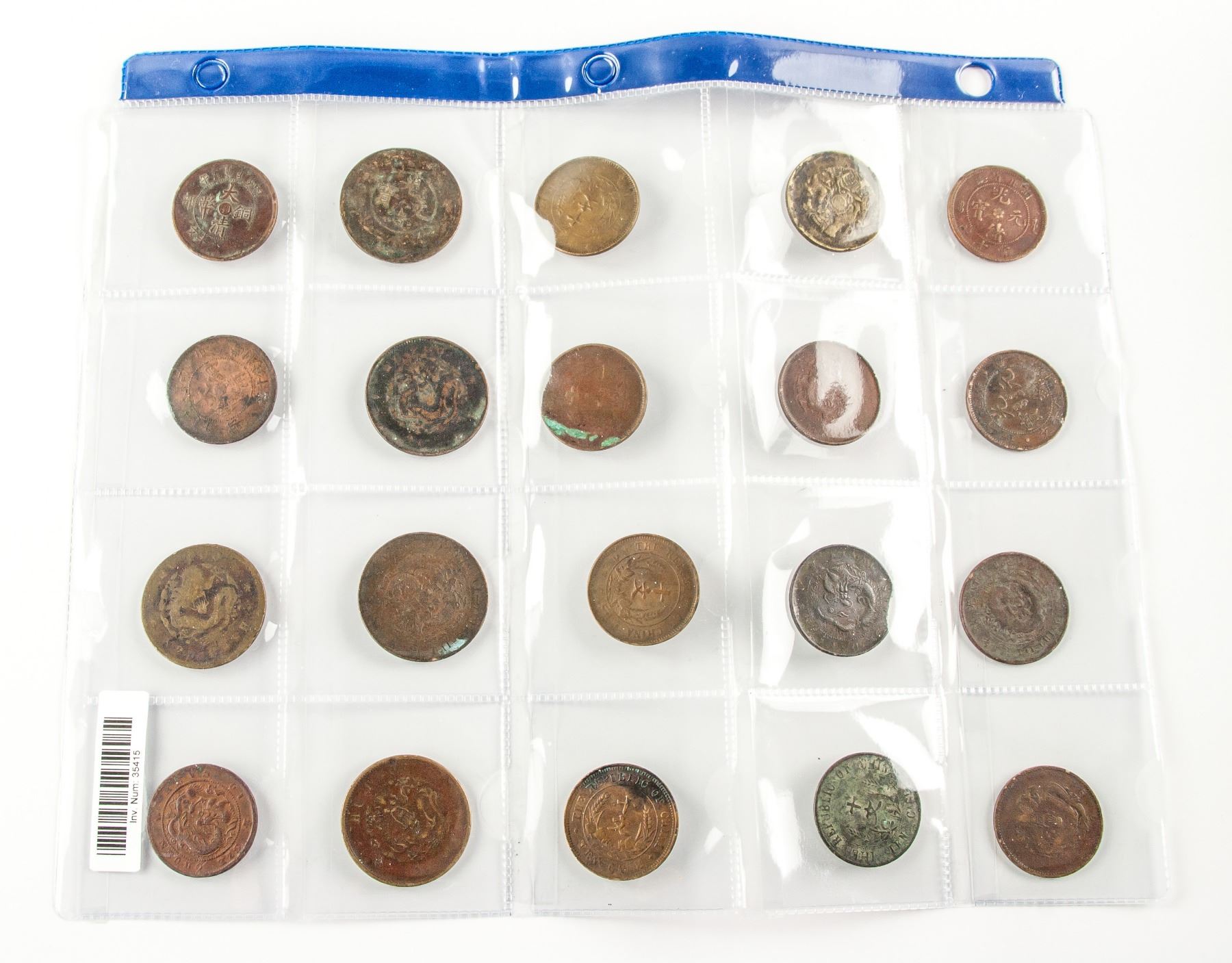 20 assorted Chinese copper coins, 2 Daqing Tongbi 1906 Hubei 10 Cash, 4 Guangxu Yuanbao Hubu 20 Cash, 1 Guangxu Yuanbao Sichuan 10 Cash, 1 Guangxu Yuanbao Kiangnan 10 cash, 1 Daqing Tongbi 1907 10 Cash, 1 Guangxu Yuanbao 1905 Jiangsu 10 Cash, 1 Guangxu Yuanbao Hubei 10 Cash, 1 Guangxu Yuanbao Guangdong 10 Cash, 1 Daqing Tongbi Hubu Fujian 10 Cash, 1 Guangxu Yuanbao Hubu 10 Cash, 5 Republic Kaiguo 10 Cash, D: 28-33 mm