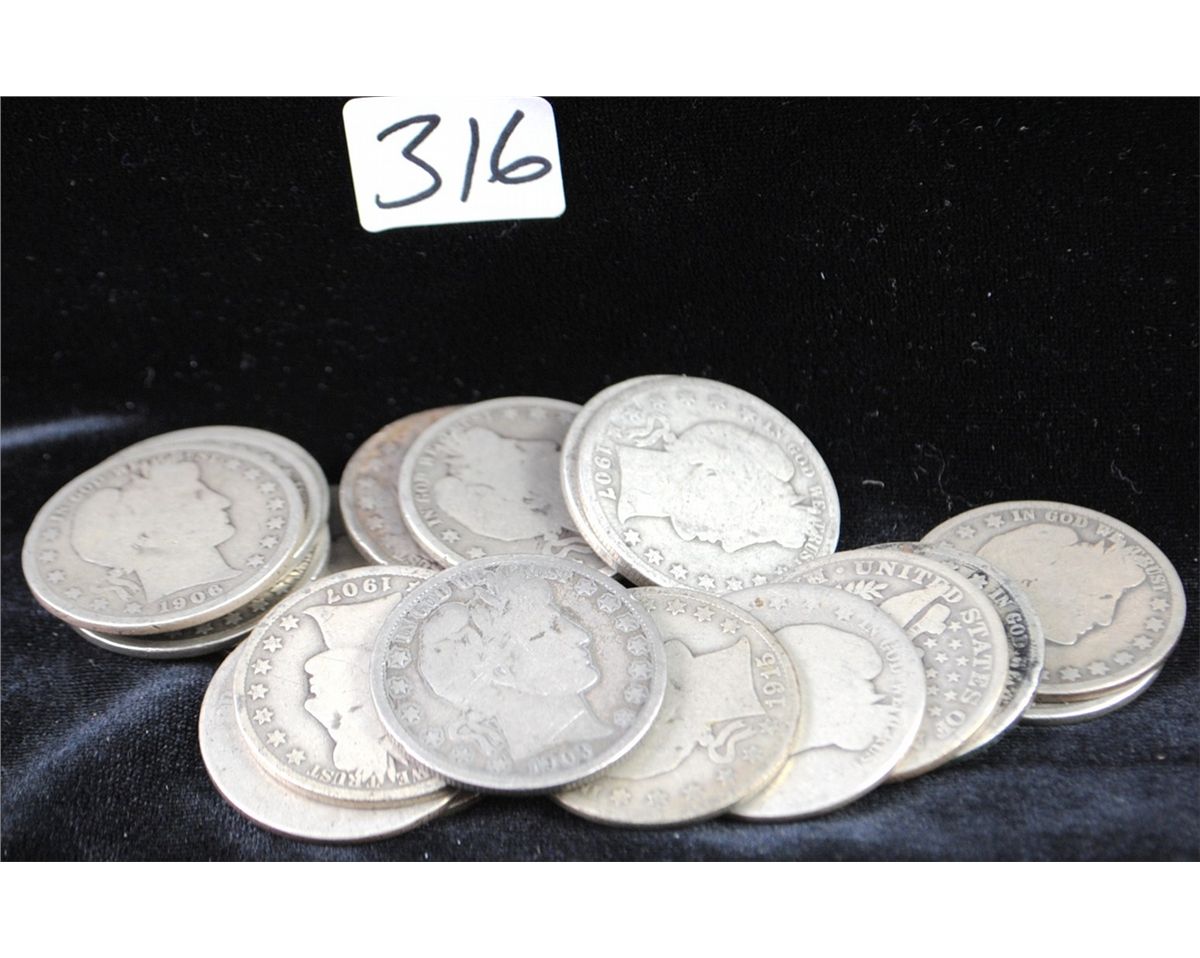 20 BARBER HALF DOLLARS FROM SAFE DEPOSIT - MIXED DATES AND MINTS - SOLD PER COIN TIMES 20