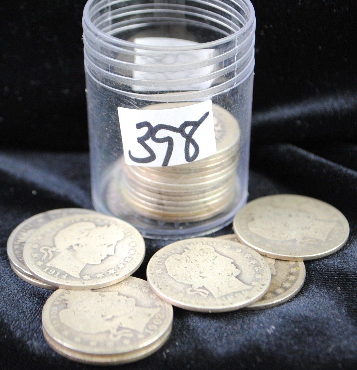 20 BARBER QUARTERS FROM SAFE DEPOSIT - MIXED DATES AND MINTS - SOLD PER COIN TIMES 20
