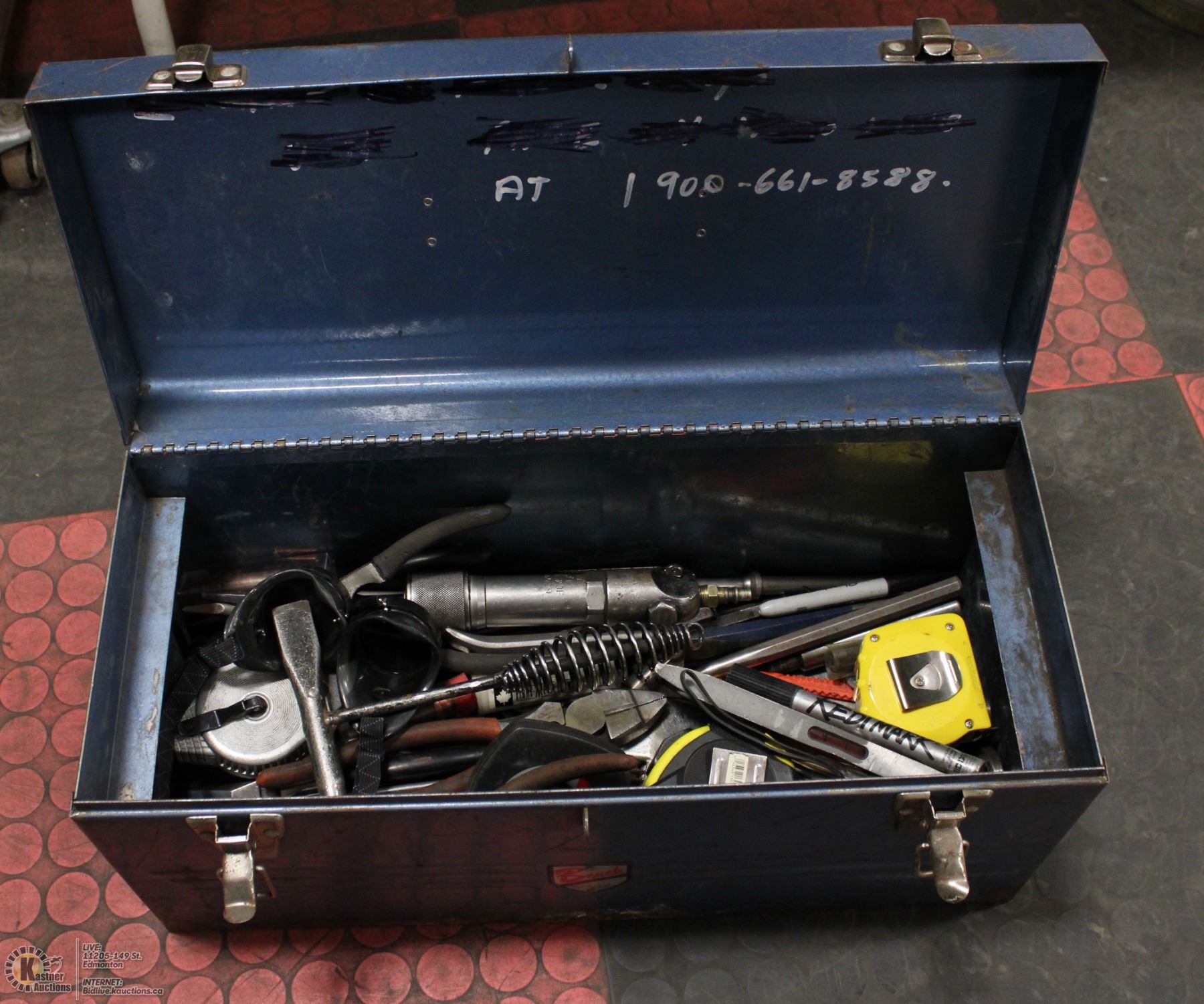 20" BEACH METAL TOOLBOX WITH CONTENTS