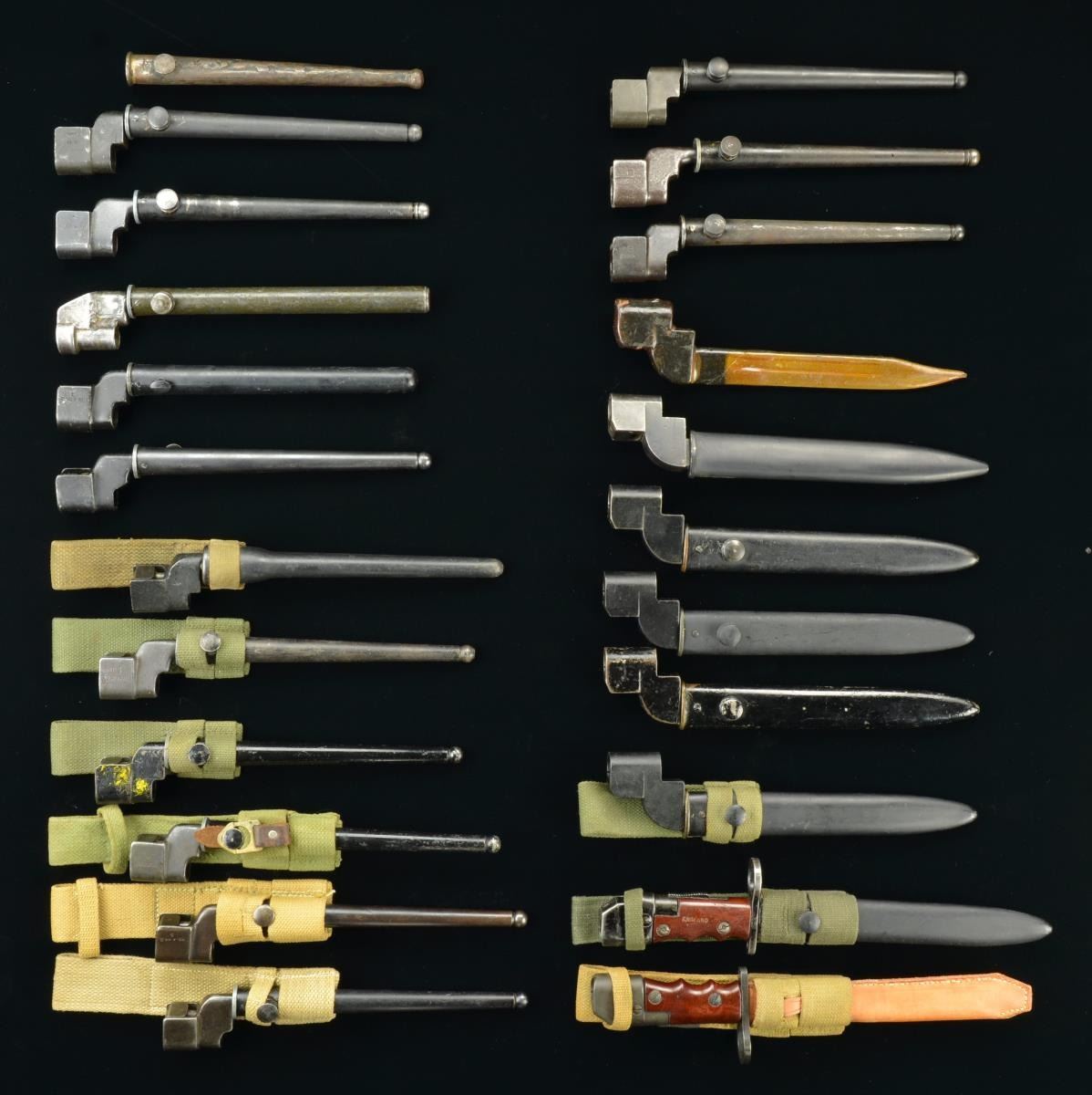 1 - No. 7 MK I bayonet, metal scabbard w/ green khaki frog.
