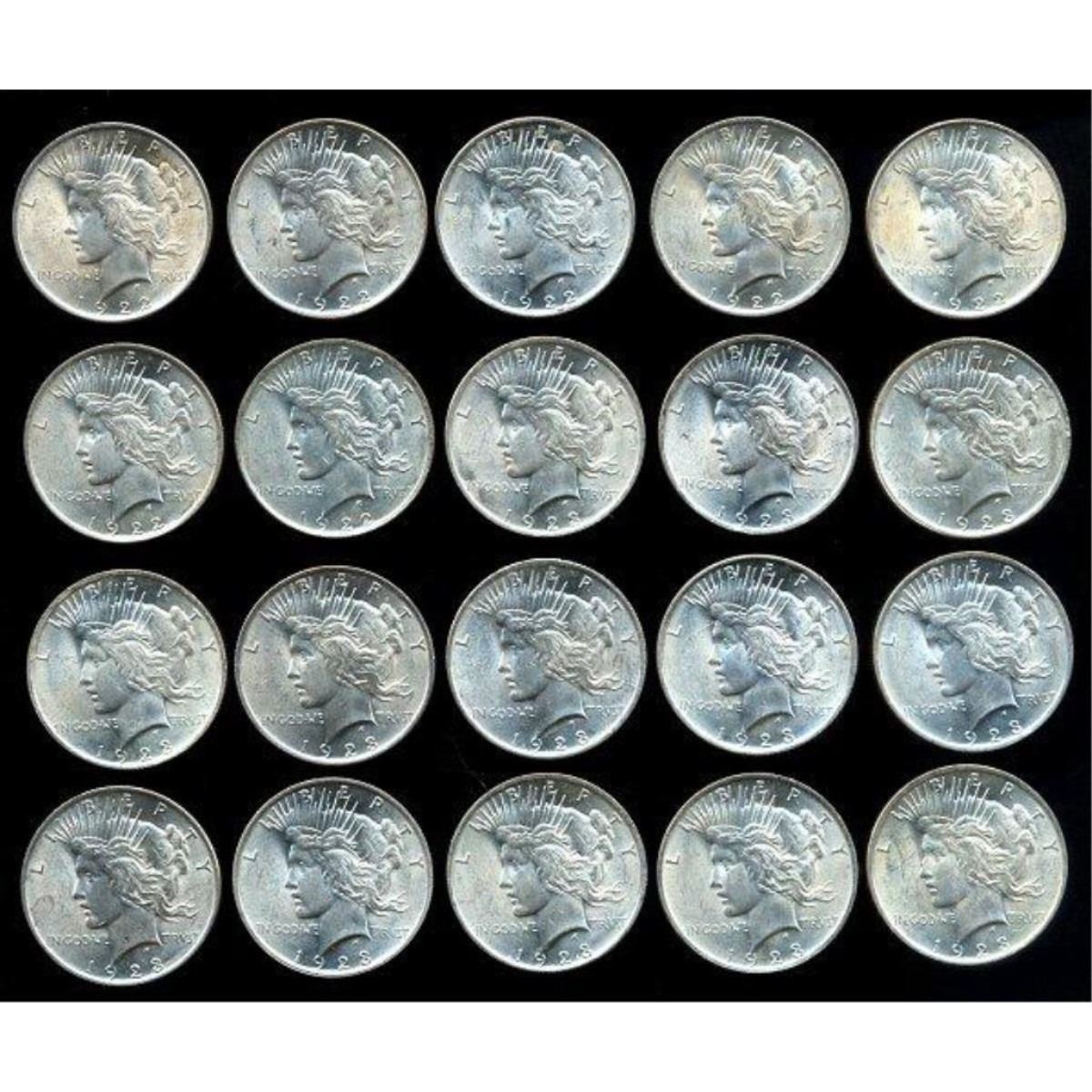 The Peace dollar is a United States dollar coin minted from 1921 to 1928, and again in 1934 and 1935. Designed by Anthony de Francisci, the coin was the result of a competition to find designs emblematicofpeace. Its obverse represents the head and neck of the Goddess of Liberty in profile, and the reverse depicts a bald eagle at rest clutching an olive branch, with the legend "Peace". It was the last United States dollar coin to be struck for circulation in silver.
