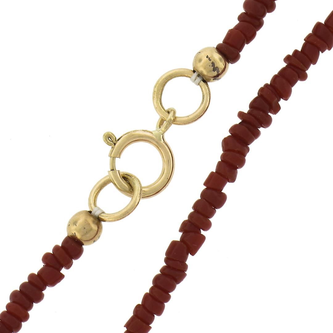 20" Bead Narrow Tumbled Coral Strand Necklace w/ 14k Yellow Gold Ends & Clasp