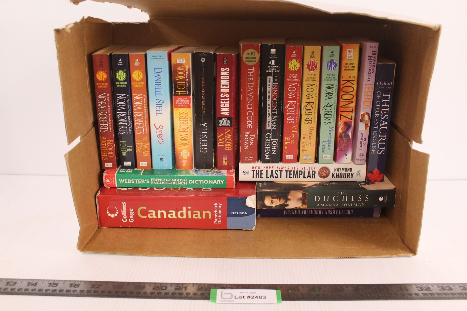 (20) Books: Webster's Dictionary, Canadian Dictionary, Dan Brown, Nora Roberts, Dean Koontz, Misc.