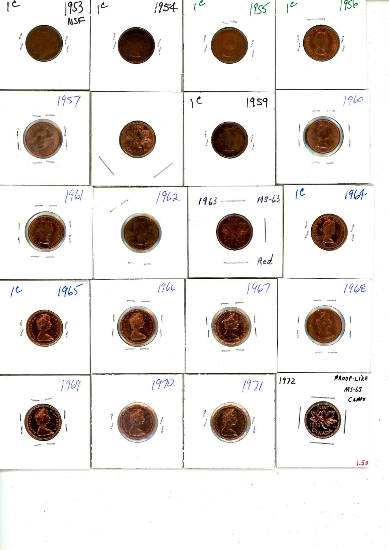 20 – CDN CENTS 1953NSF- 1972 INCL ALL UNC OR BETTER