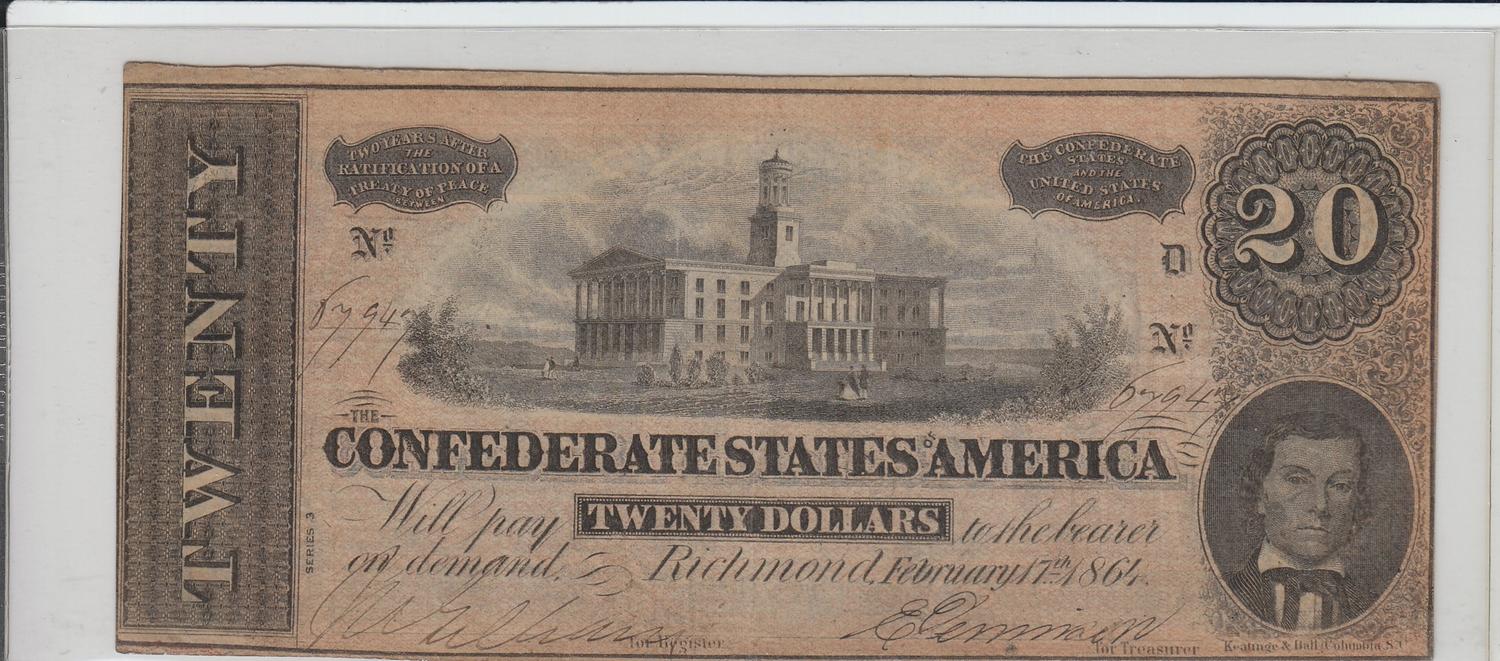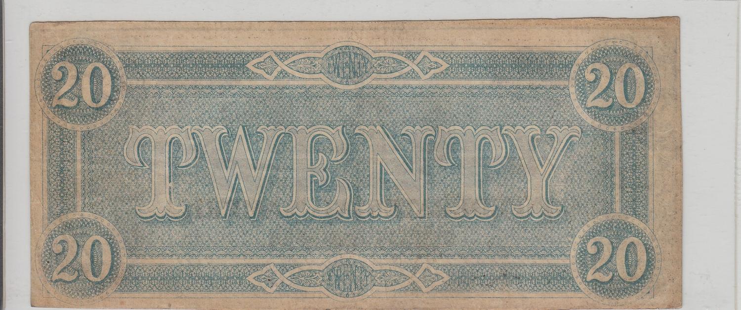 $20 CONFEDERATE CURRENCY 1864 SHARP NOTE