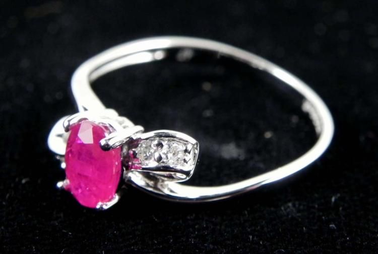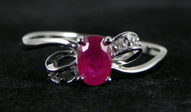 Here is a 10K white gold ruby and diamond ring. The weight of the ruby is 1.06 carats and the diamond is .20 carats. *