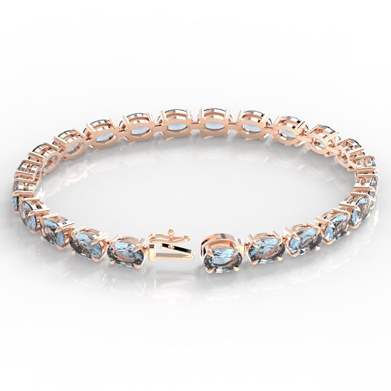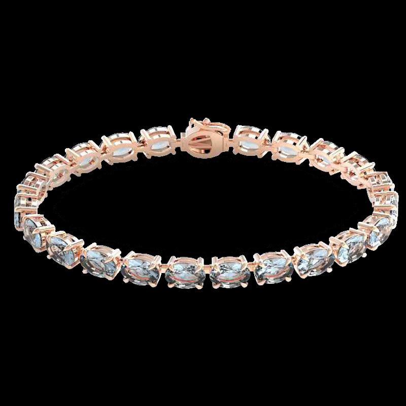 REF-178F2N -23385 ---- 20 CTW Aquamarine Eternity Designer Inspired Tennis Bracelet 14K Rose Gold ---- Luxury Designer Brand Bracelet Appraised at $13,700 Certificate Number US23385 14k Rose gold, Bracelet Size is 7 Inches, Bracelet measuring approx. 9 mm x 7 INCHES, weighing in total approx. 12 grams. Made in the USA and is stamped 14k, Main stone 20 carat total weight containing 23 pieces of Translucent Medium Blue color with AAA quality Oval shape cut Aquamarine , Stone #2 carat total weight containing pieces of color with quality shape cut