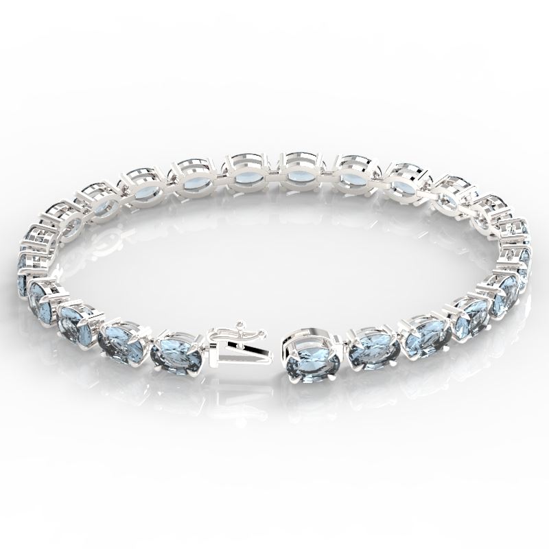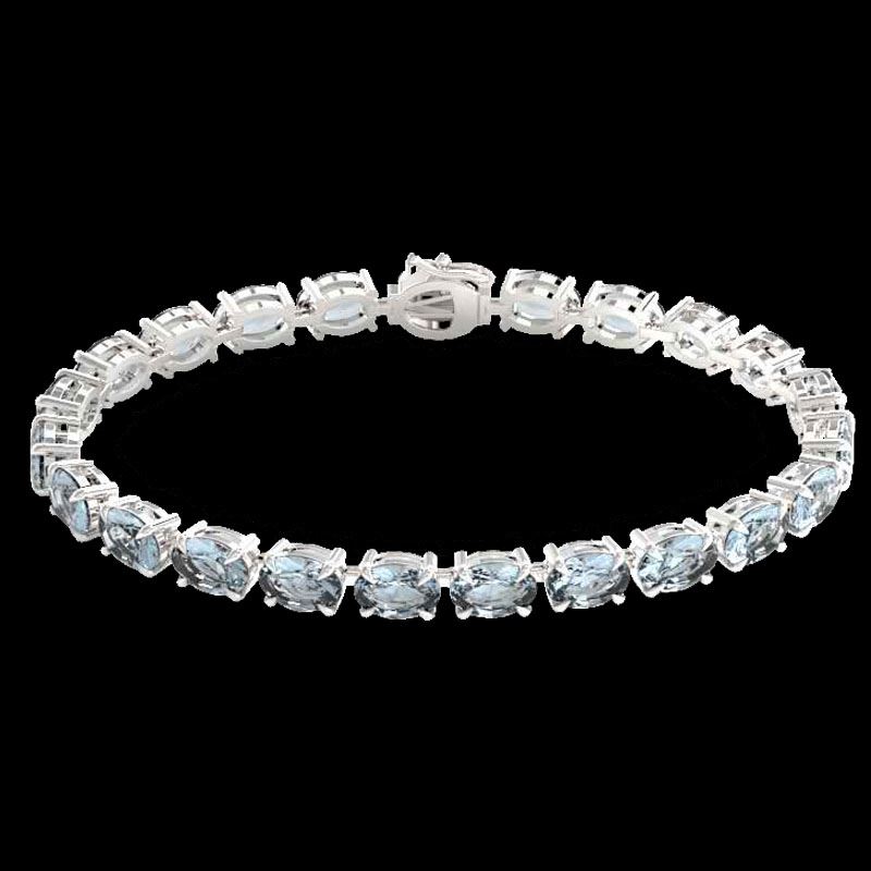 20 CTW Aquamarine Eternity Designer Inspired Tennis Bracelet 14K White Gold ---- Luxury Designer Brand Bracelet Appraised Retail Price at $13,700 ---- SKU Number US23384 14k White gold Bracelet Size is 7 Inches, Bracelet measuring approx. 9 mm x 7 INCHES, weighing in total approx. 12 grams. Made in the USA and is stamped 14k, Main stone 20.00 carat total weight containing 23 pieces of Translucent Medium Blue color with AAA quality Oval shape cut Aquamarine , Stone #2 carat total weight containing pieces of color with quality shape cut