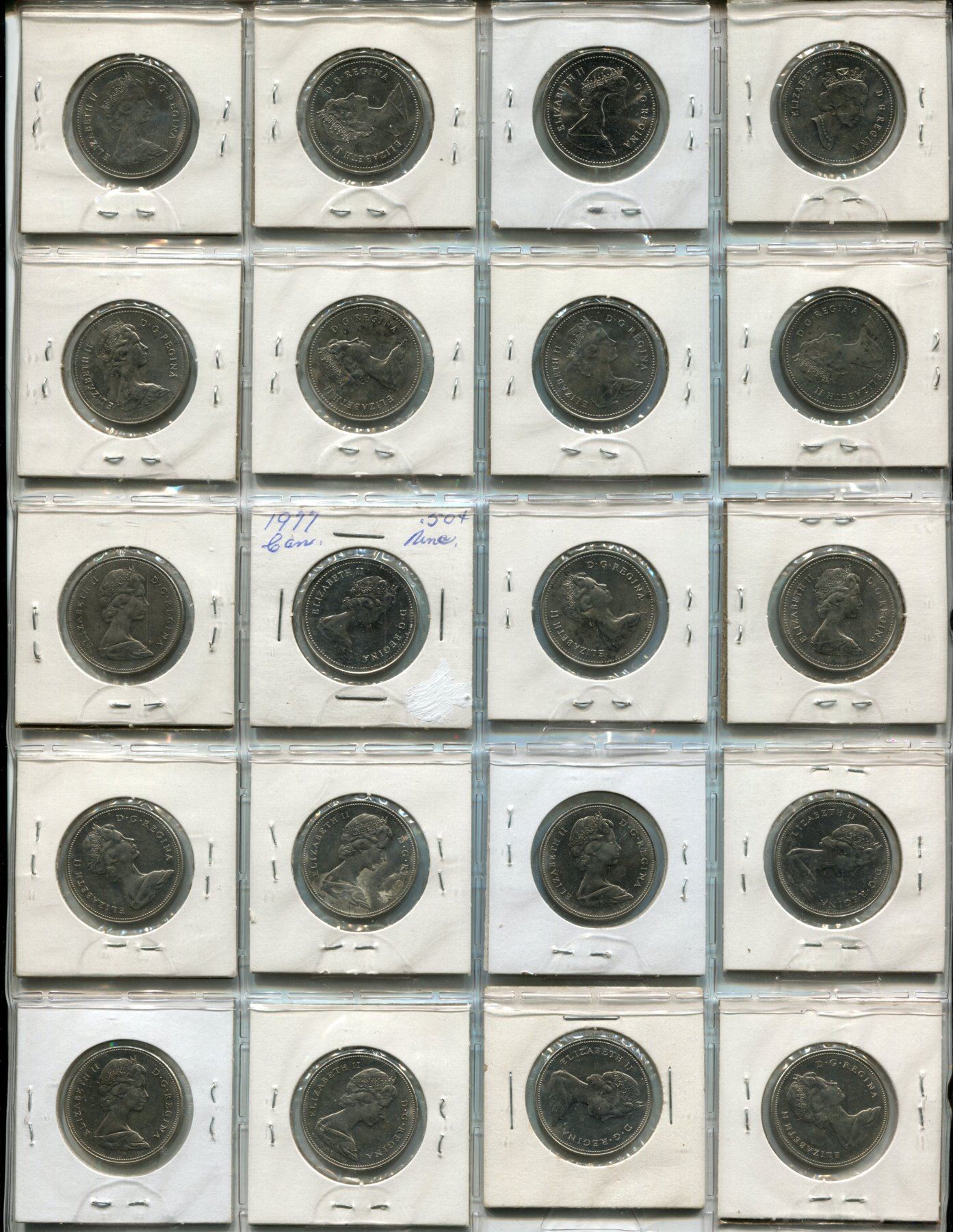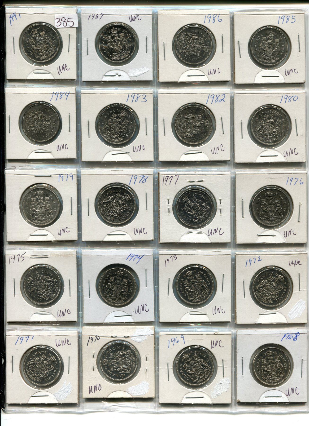 20-Canadian 50 cent pieces 1968 to 1991 (all different),20-Canadian 50 cent coins