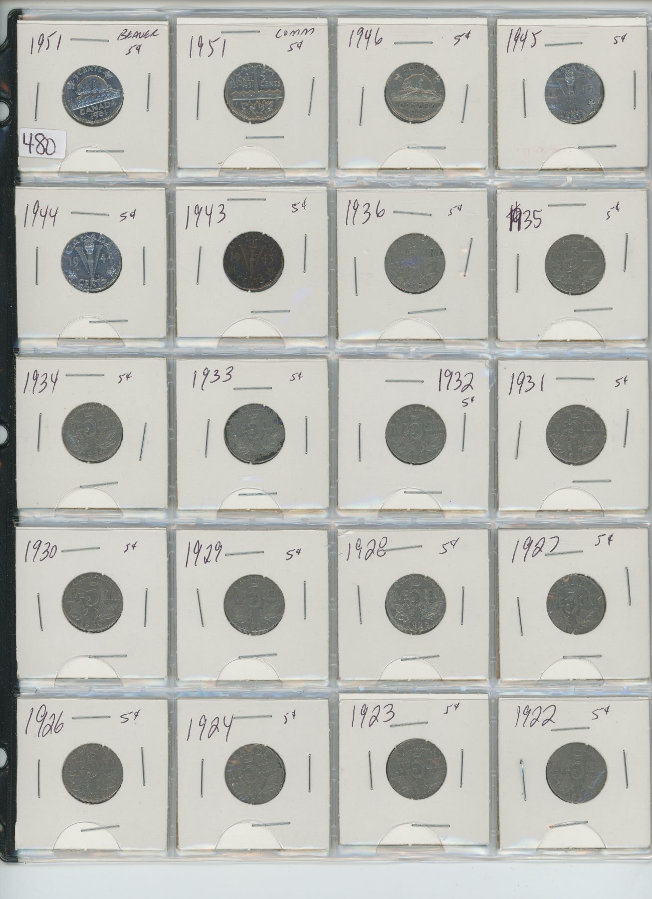 20-Canadian nickels 1922 to 1951 (all different),20-Canadian nickels