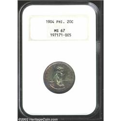 20 Centavos 1904, MS67 NGC. Attractive. Important notice: We expect to be auctioning lots at the rat