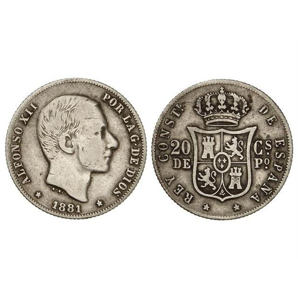20 Centavos de Peso. - 1881. - MANILA. - MBC-/BC+. - -