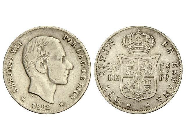 20 Centavos de Peso. 1882. MANILA. (Rayitas). BC+/MBC-.
