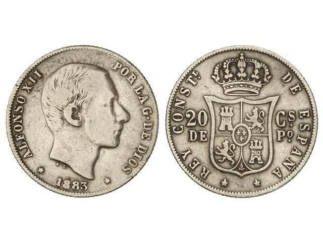 20 Centavos de Peso. 1883. MANILA. (Pequeños golpecitos y rayitas). MBC-/MBC.
