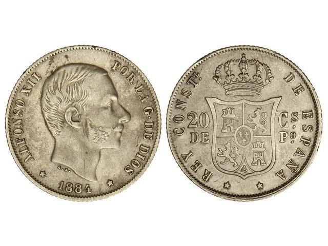 20 Centavos de Peso. - 1884. - MANILA. - (Rayitas y golpecitos en gráfila). MBC+. - -