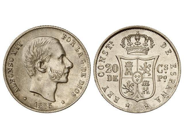 20 Centavos de Peso. 1885. MANILA. MBC+.
