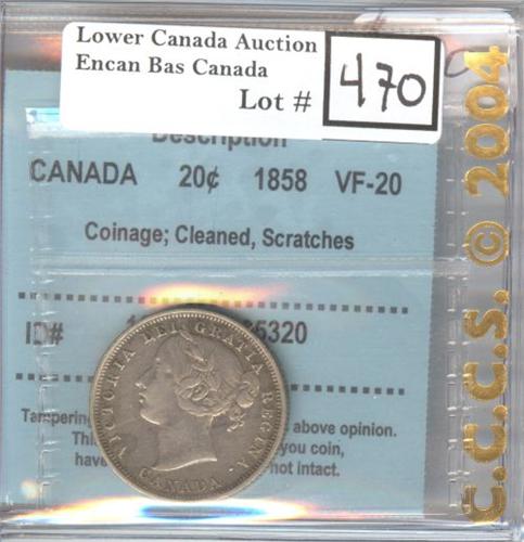 1858 CCCS certified VF-20; Coinage, Scratches. Type coin.