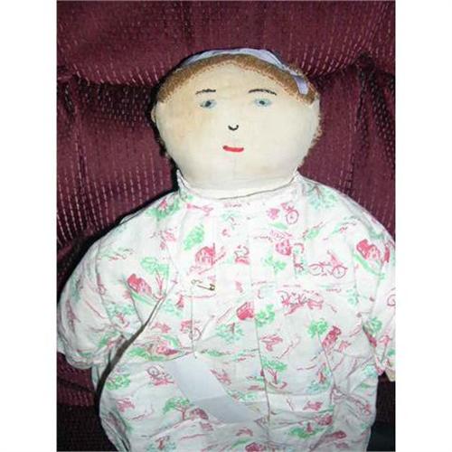 20" Cloth Doll With Stitched Features and tan yarn for wig. A very nice fat doll! Doll comes from a smoke free environment. Buyer to pay $15 for shipping, handling, and insurance. Thanks for viewing.