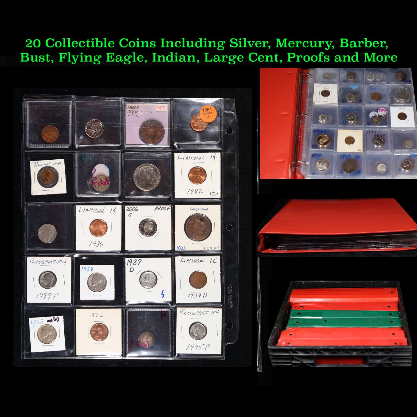 20 Collectible Coins Including Silver, Mercury, Barber, Bust, Flying Eagle, Indian, Large Cent, Proo