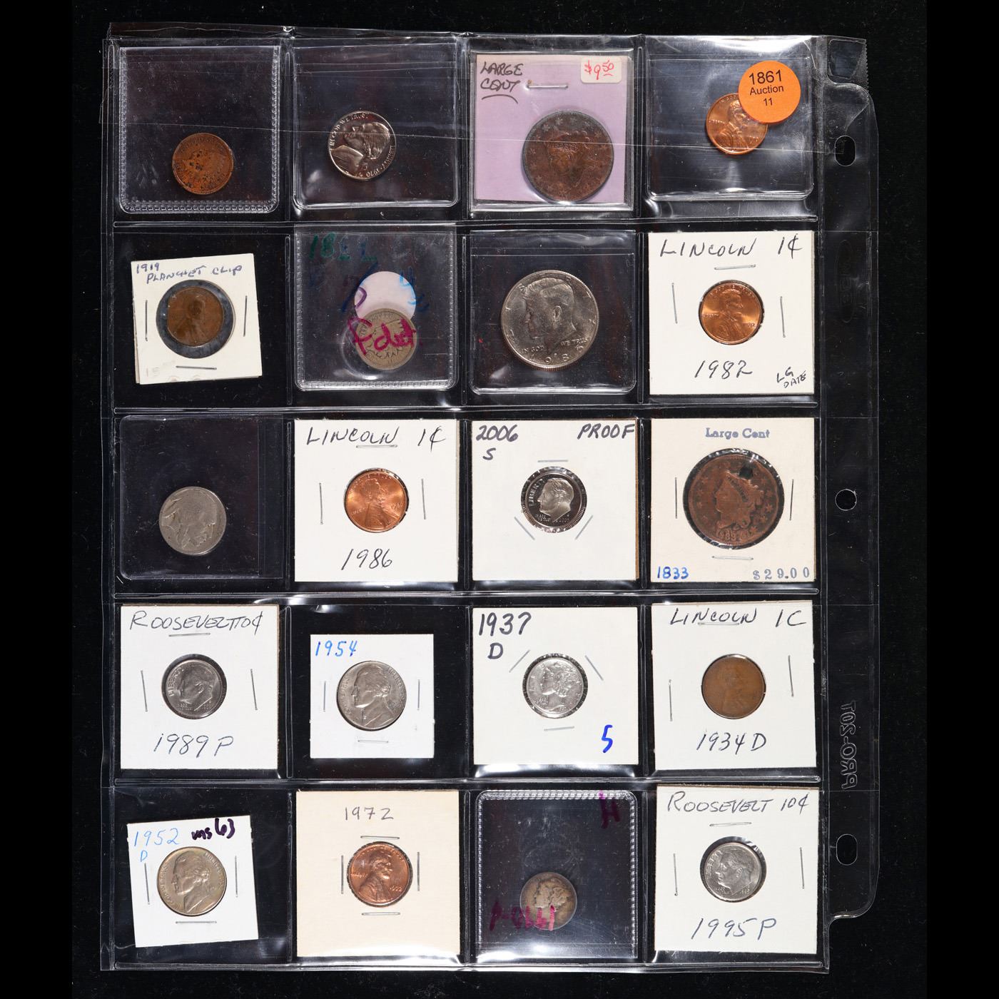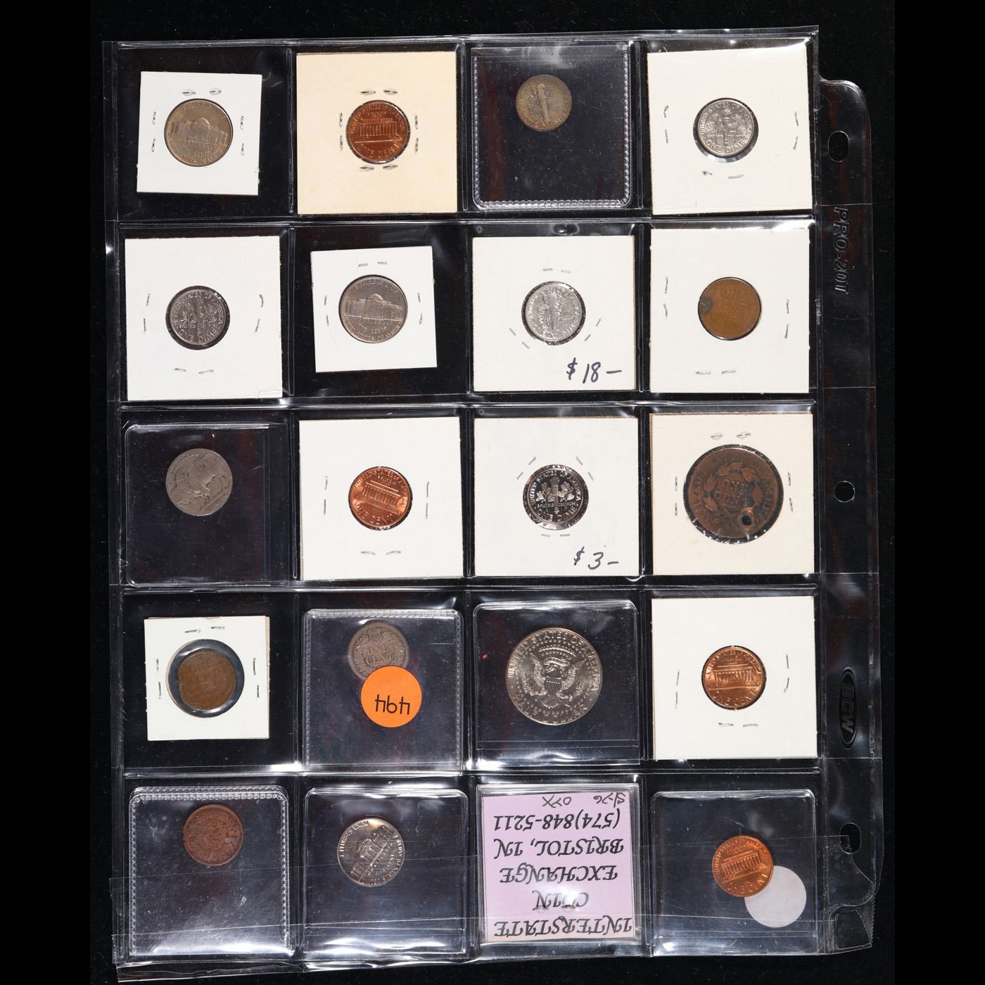 20 Collectible Coins Including Silver, Mercury, Barber, Bust, Flying Eagle, Indian, Large Cent, Proofs and More!. We have received a huge collection of over 10 thousand US coins in flips, 2x2 holders, and 20 coin pages. We are forced, due to limited lots, to sell this collection in pages of 20 coins. All of the pages include Silver Coins. Most contain Indian Cents, Proof Coins, Barber Coinage, Bust Coinage, Lincoln Cents, Flying Eagles, Jefferson Nickels, Roosevelt Dimes, Buffalo Nickels, Eisenhower Dollars, Kennedy Halves, Large Cents including some Draped Bust Large Cents, Mercury Dimes, and Liberty V Nickels. These pages could not be reviewed by anyone in our office due to time constraints. We estimate the value of each page to meet or exceed $200 in value! Good luck and happy hunting.