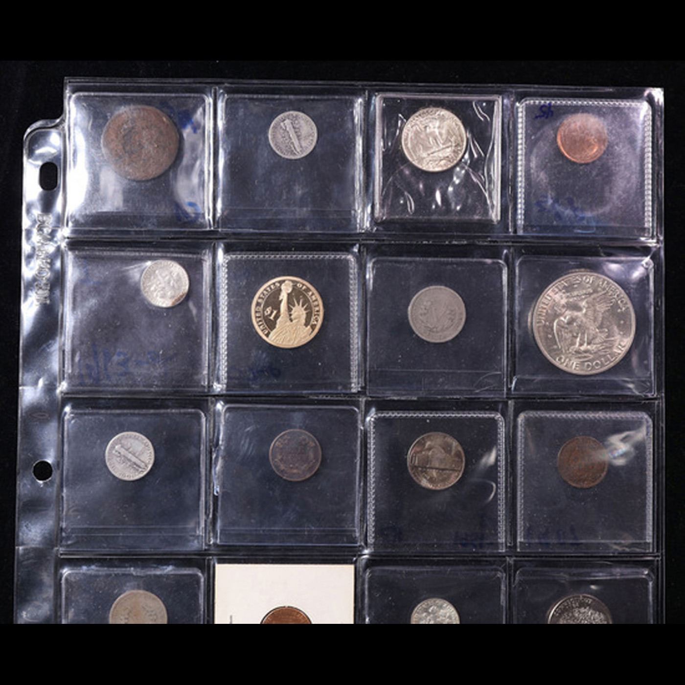20 Collectible Coins Including Silver, Mercury, Barber, Bust, Flying Eagle, Indian, Large Cent, Proofs and More!. We have received a huge collection of over 10 thousand US coins in flips, 2x2 holders, and 20 coin pages. We are forced, due to limited lots, to sell this collection in pages of 20 coins. All of the pages include Silver Coins. Most contain Indian Cents, Proof Coins, Barber Coinage, Bust Coinage, Lincoln Cents, Flying Eagles, Jefferson Nickels, Roosevelt Dimes, Buffalo Nickels, Eisenhower Dollars, Kennedy Halves, Large Cents including some Draped Bust Large Cents, Mercury Dimes, and Liberty V Nickels. These pages could not be reviewed by anyone in our office due to time constraints. We estimate the value of each page to meet or exceed $400 in value! Good luck and happy hunting.