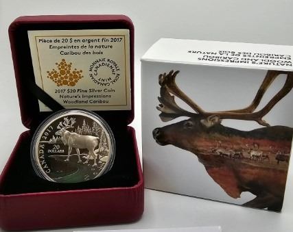 20 DOLLARS 2017 CARIBOU DES BOIS FINE SILVER .999