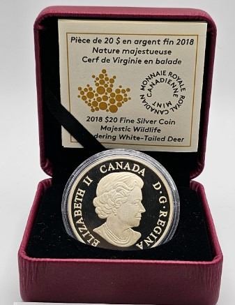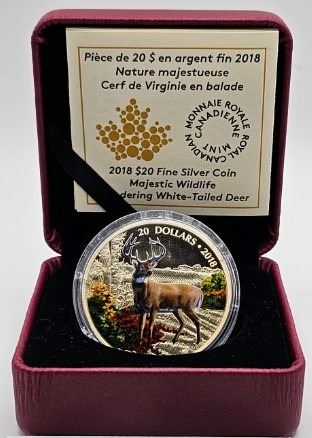 20 DOLLARS 2018 CERF DE VIRGINIE EN BALADE FINE SILVER .999 CRACKED CAPSULE