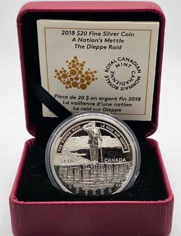 20 DOLLARS 2018 LE RAID DE DIEPPE FINE SILVER .999