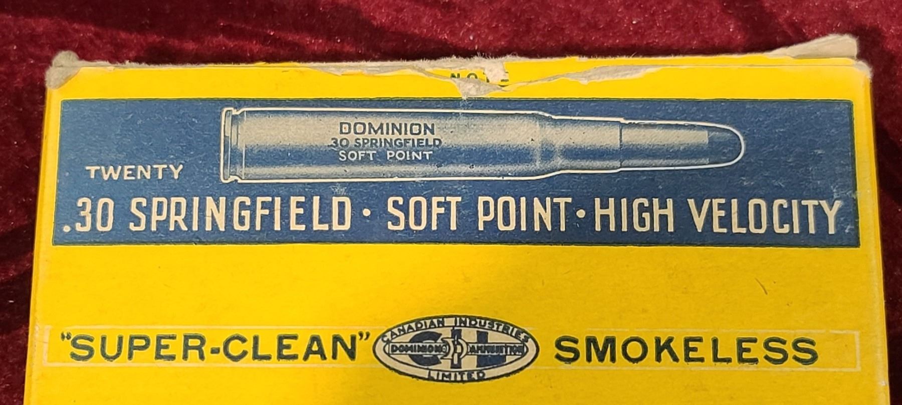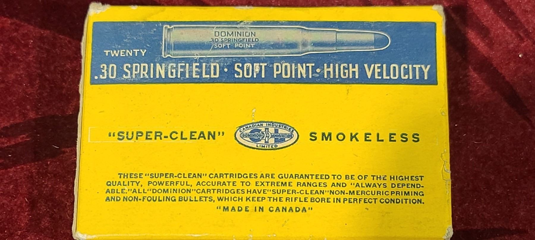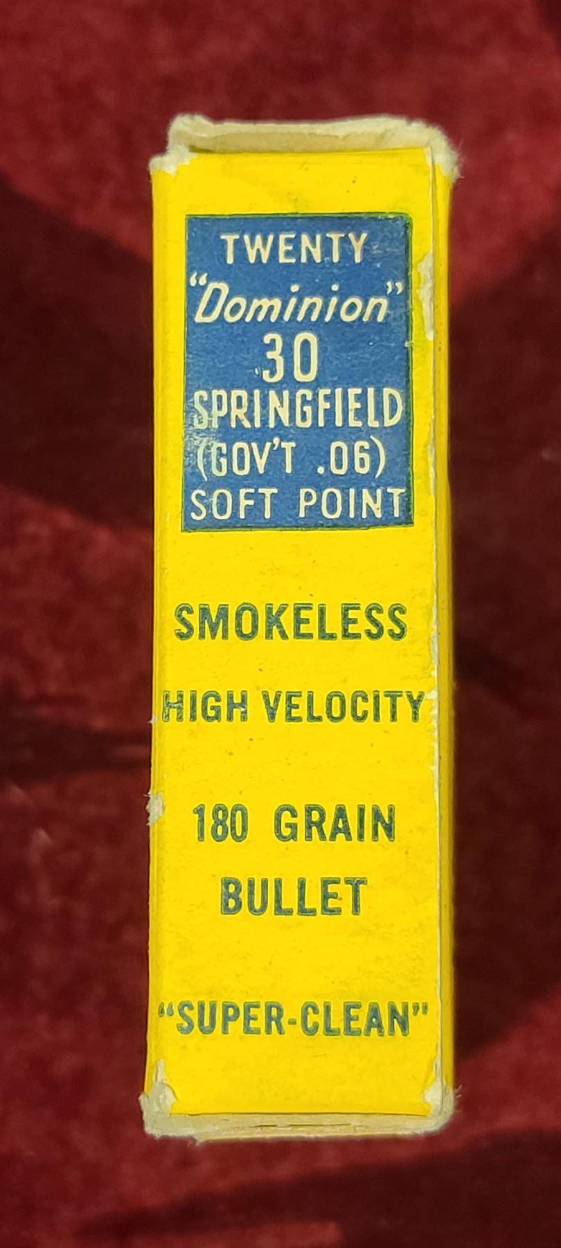 20 DOMINION .30 SPRINGFIELD (GOV'T .06) SMOKLESS, HIGH VELOCITY, SOFT POINT 180GR "SUPER CLEAN" AMUNITION