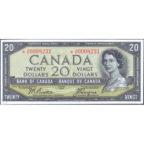 1954 Twenty Dollars Devil’s Face Replacement Beattie-Coyne, BC-33bA Serial Number *A/E0008231, PMG Gem Uncirculated 66 Exceptional Paper Quality