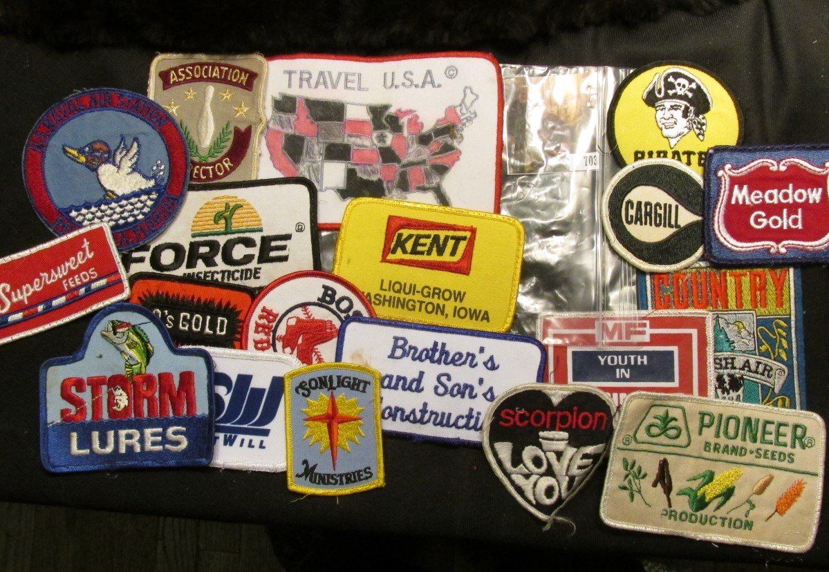 (20) Different Cloth Embroidered Advertising Patches including "Pioneer Brand Seeds", "Meadow Gold", "Kent Liqui-Grow Washington, Iowa", "Force Insecticide", "Pirates", "Scorpion Love You", "Boston Red Sox" & much more. This is the beginning of a sale of cloth embroidered patches with almost no duplicates in the entire collection, I hope you enjoy.