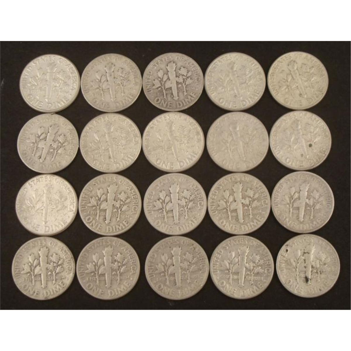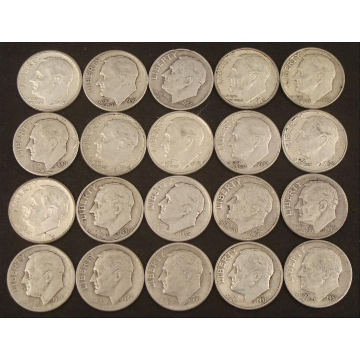 20 Different Date Roosevelt Silver Dimes * * Nice SetDates: 1946-P, 1947-P, 1950-D, 1951-P,D, 1952-P,D, 1953-D, 1956-P, 1957-P,D, 1958-D, 1959-D, 1960-D, 1961-D, 1962-D, 1963-P,D, 1964-P,D